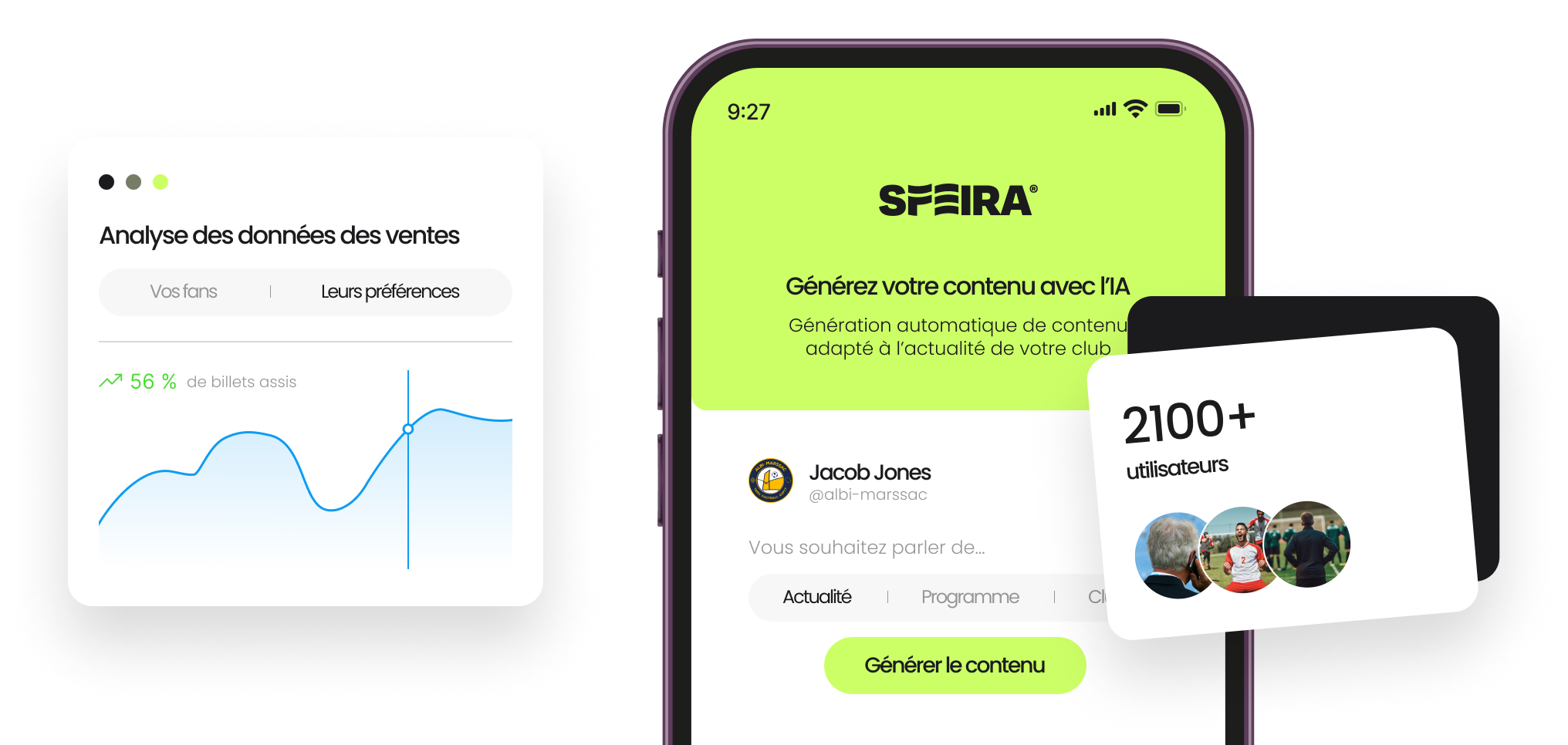 Propulsez votre club sportif vers le succès avec SFEIRA®, le “Sport Management system” qui simplifie la gestion de votre billetterie, votre boutique en ligne, votre communauté. Gagnez du temps, fidélisez vos membres et augmentez vos revenus dès aujourd’hui !
