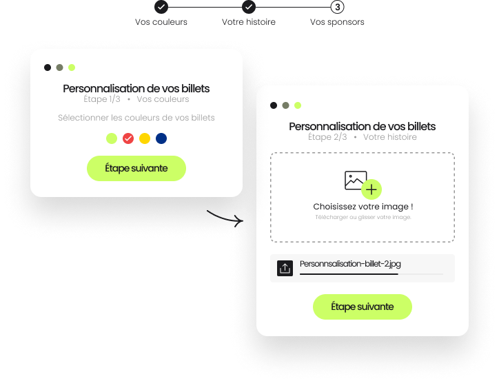 Personnalisez vos billets aux couleurs de votre club tout en respectant le cahier des charges des fédérations ! Avec notre fonctionnalité de personnalisation des couleurs, vous pouvez adapter l’apparence de vos billets pour qu’ils reflètent parfaitement l’identité de votre club.