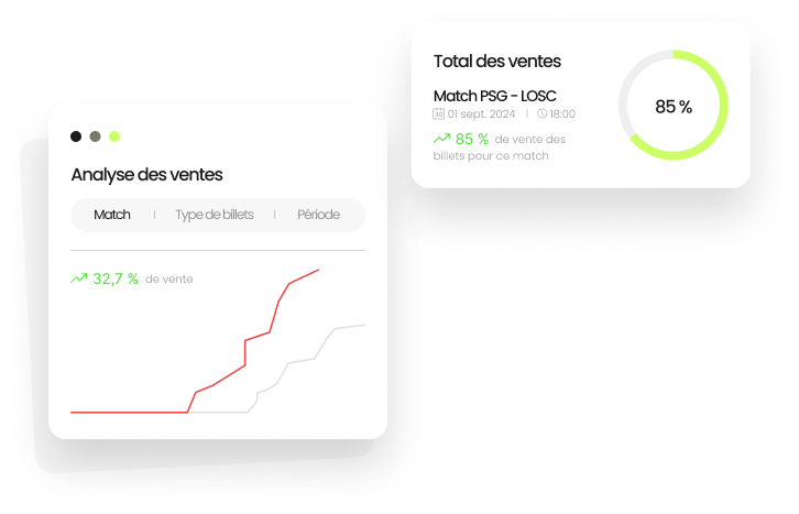 Suivez l’évolution de vos ventes en live, accédez à des préconisations grâce à SFEIRA® IA et améliorez votre taux de remplissage. Visualisez vos revenus par match, par type de billets ou par période, et garder une trace précise de chaque vente. Générez automatiquement la feuille de recette à la fin du match.